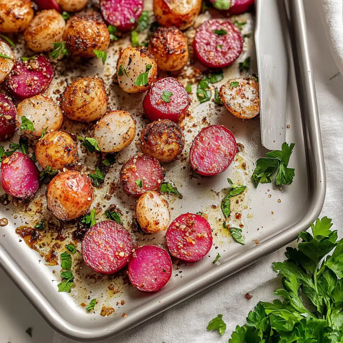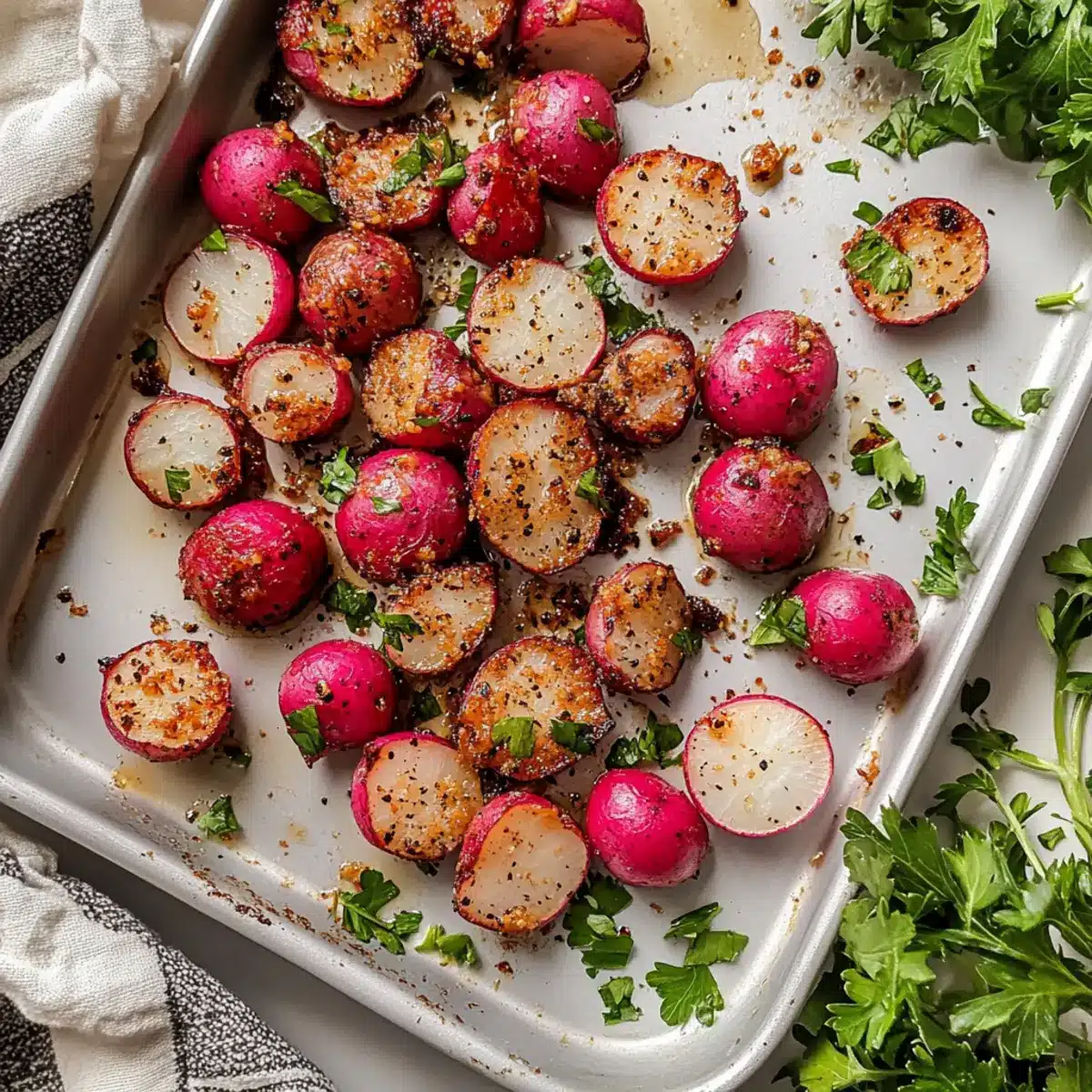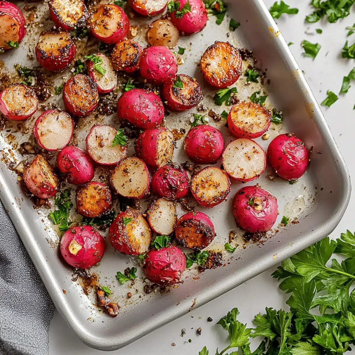 Spicy Kick: Add a pinch of red pepper flakes or toss in some sliced jalapeños before roasting to crank up the heat! It’ll perfectly balance the natural sweetness of the radishes.