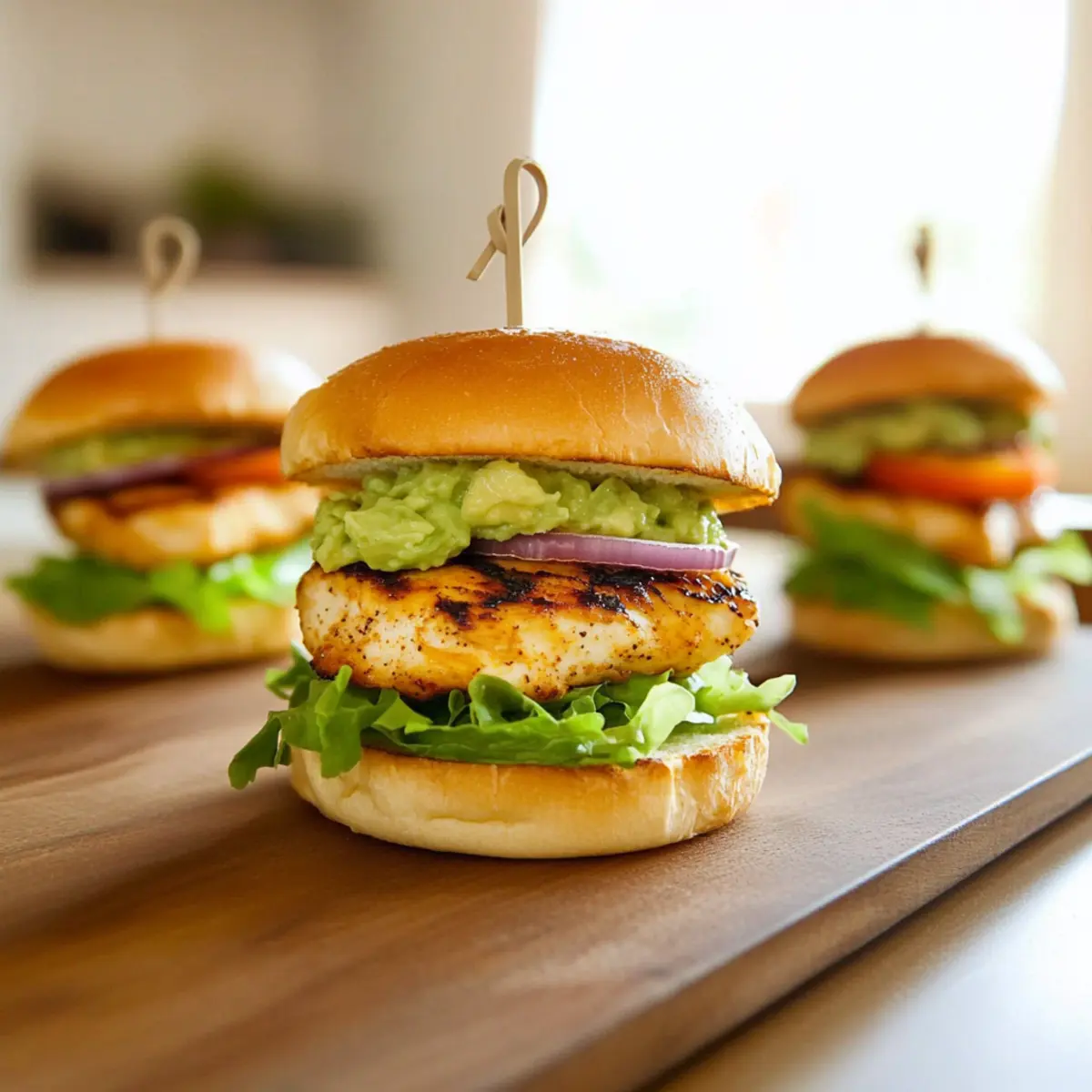 - Assemble the sliders by spreading the avocado mixture on the buns, adding chicken, vegetables, and optional cheese.