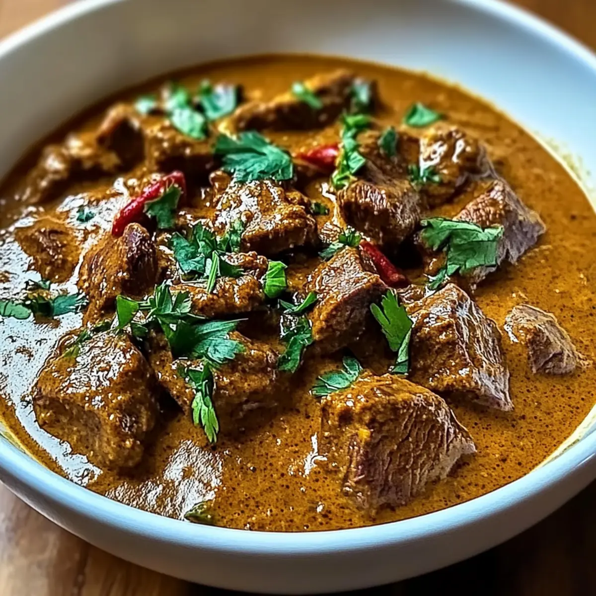 - After simmering, check the tenderness of the beef, and adjust seasoning if needed. Serve hot over fluffy jasmine rice or with warm naan.