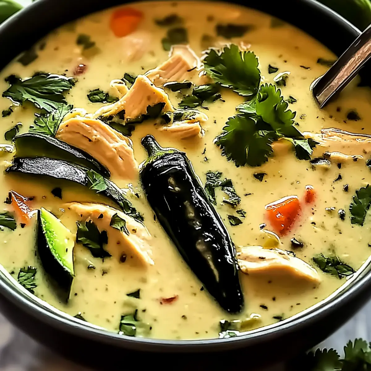 Elevate with Toppings: Don’t skimp on toppings like fresh cilantro or avocado; they add color, texture, and wonderful freshness to your creamy chicken poblano soup.