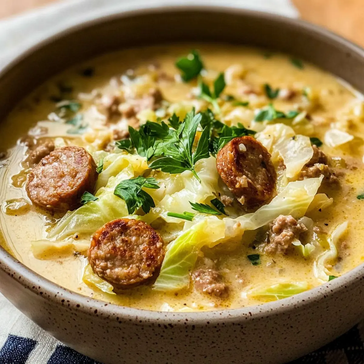 Indulge in this Creamy Sausage & Cabbage Soup, where comfort meets health!