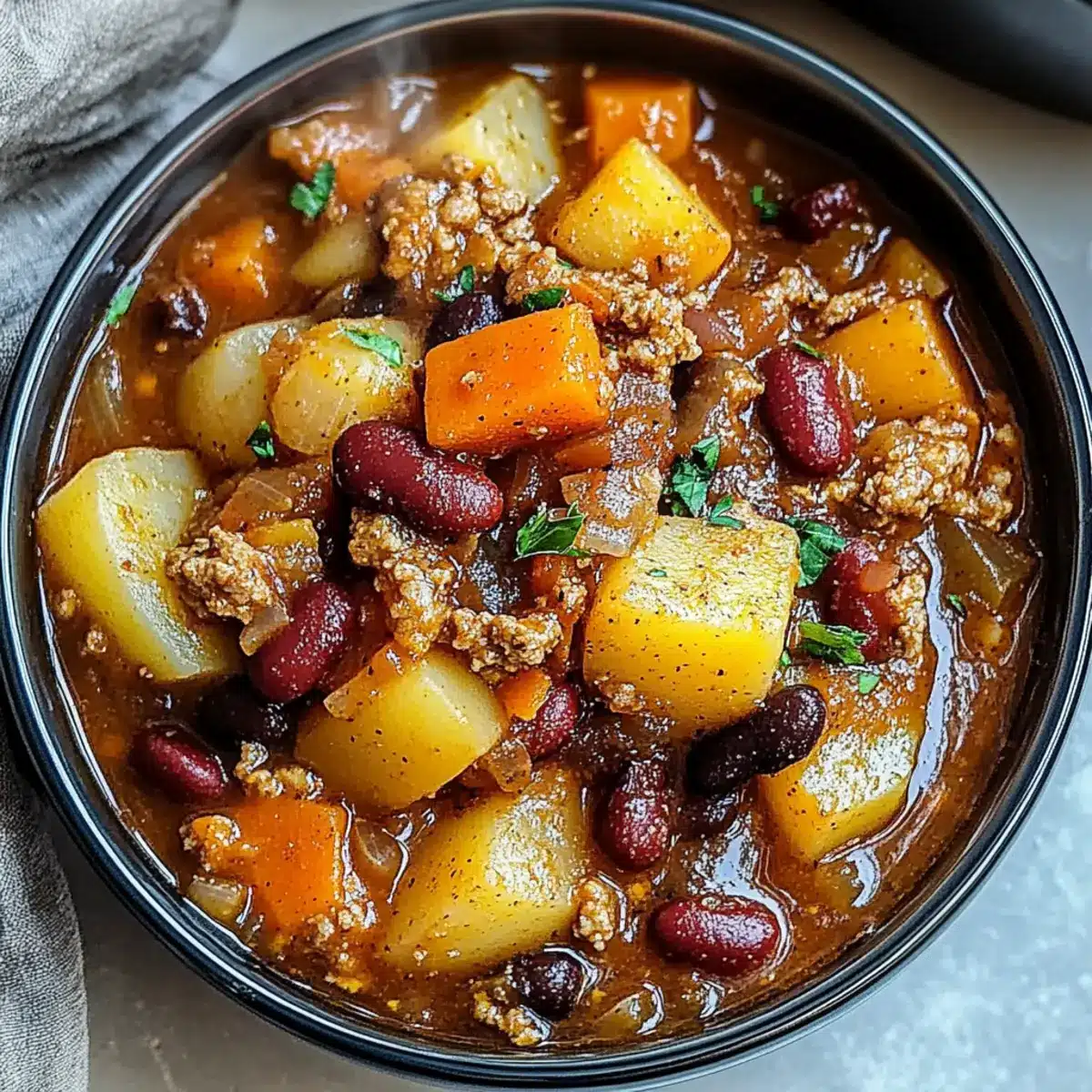 - Savory Sausage: Try swapping the ground beef for Italian sausage for a robust flavor that pairs beautifully with the stew’s hearty ingredients.