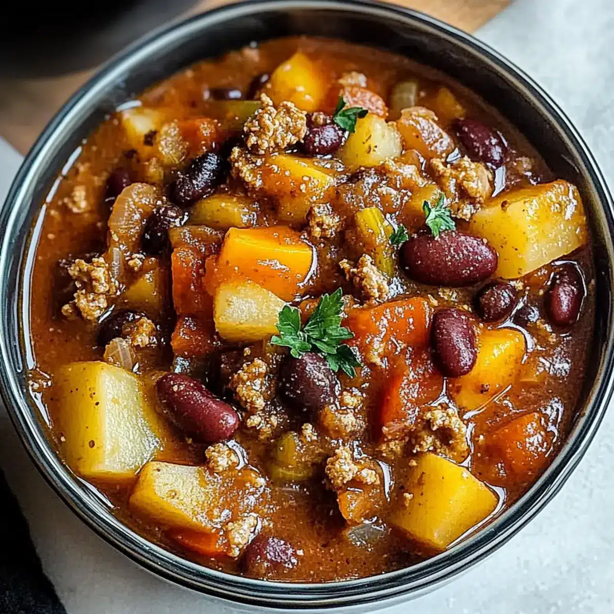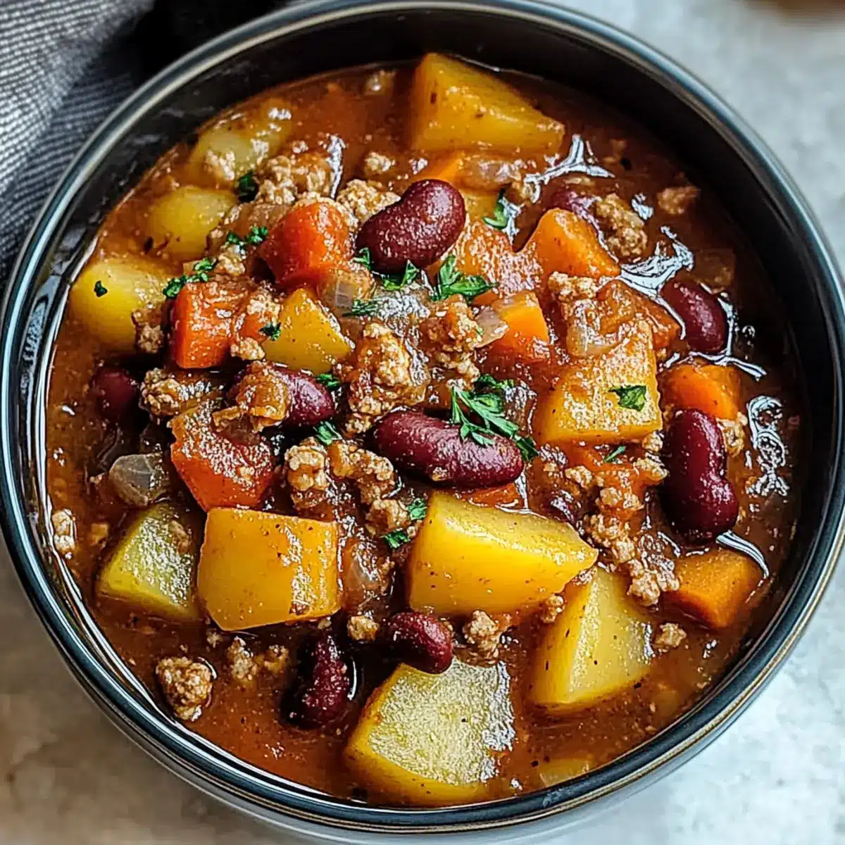 Hearty Flavor: This rich, savory stew brings together ground beef, fresh vegetables, and a comforting tomato broth that fills your kitchen with mouthwatering aromas.