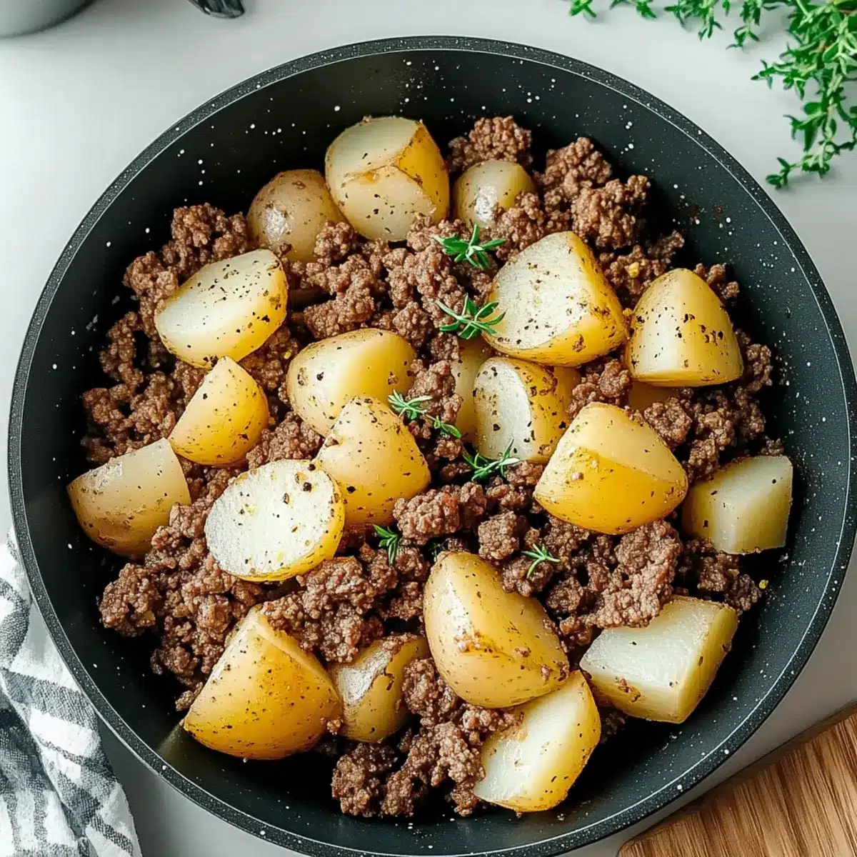 The rich, warming aroma wafting through the kitchen transports me back to my childhood, where every Sunday was dedicated to hearty home-cooked meals. Today, I’m excited to share my Hearty Ground Beef and Potatoes Skillet, a comforting dish that combines savory ground beef with tender potatoes, all in one easy skillet. This beginner-friendly recipe is perfect for a quick weeknight dinner, providing you with a satisfying meal that warms the heart without the fuss of complicated prep. Plus, it’s a true crowd-pleaser—great for family gatherings or simply a cozy night in! Ready to dive into the delicious, comforting flavors of this delightful dish? Let’s get cooking!