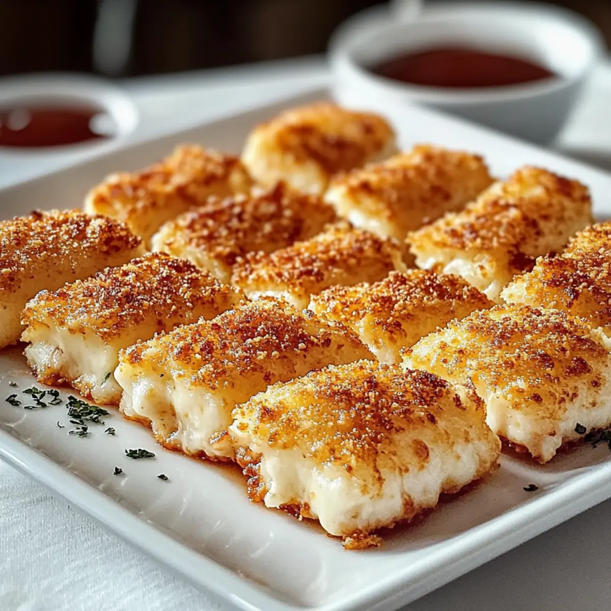 Marinara Sauce: The classic dipping companion; its tangy sweetness perfectly balances the cheesy richness of the sticks.