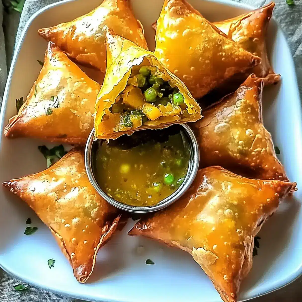 Mint Chutney: This refreshing dip enhances the samosas’ spiced flavors, providing a bright balance to the savory filling. The coolness of the mint cuts through the richness, making each bite more enjoyable.