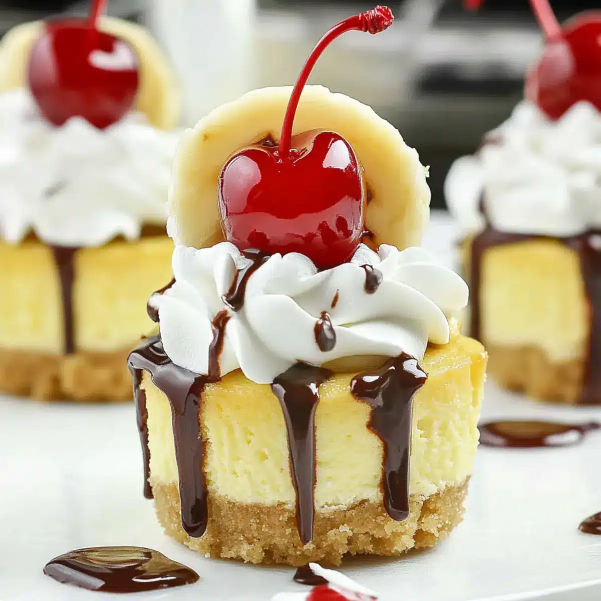 As I plated my Mini Banana Split Cheesecakes, that delightful rush of nostalgia washed over me—each bite is like a sunny day in summer. This recipe, with its creamy banana filling resting on a buttery vanilla wafer crust, is an effortless way to satisfy your sweet tooth without the guilt. Perfect for gatherings or a cozy night at home, these mini desserts are not only light and refreshing but also incredibly quick to prepare. You’ll impress family and friends while indulging in a timeless flavor that harkens back to classic banana splits. Curious to know how to whip up this delightful treat? Let’s dive into the simple steps to create these charming little delights!