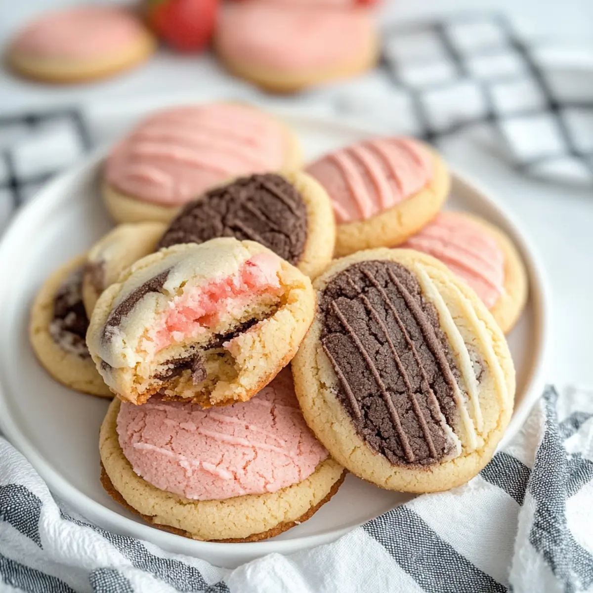 These Neapolitan Cookies are ideal for busy home cooks looking to save time! You can prepare the dough up to 24 hours in advance and refrigerate it in an airtight container. To maintain their quality, keep the dough you’ve divided for each flavor (vanilla, chocolate, strawberry) and ensure it’s tightly wrapped to prevent drying out. When you’re ready to bake, simply scoop and roll the dough in sugar as instructed, then bake straight from the fridge (no need to thaw). You can also freeze the formed cookie dough balls for up to 3 months; just flash freeze them on a baking sheet before transferring them to a zip-top bag. This way, you’ll have delicious homemade Neapolitan Cookies ready to bake any time you crave a sweet treat!