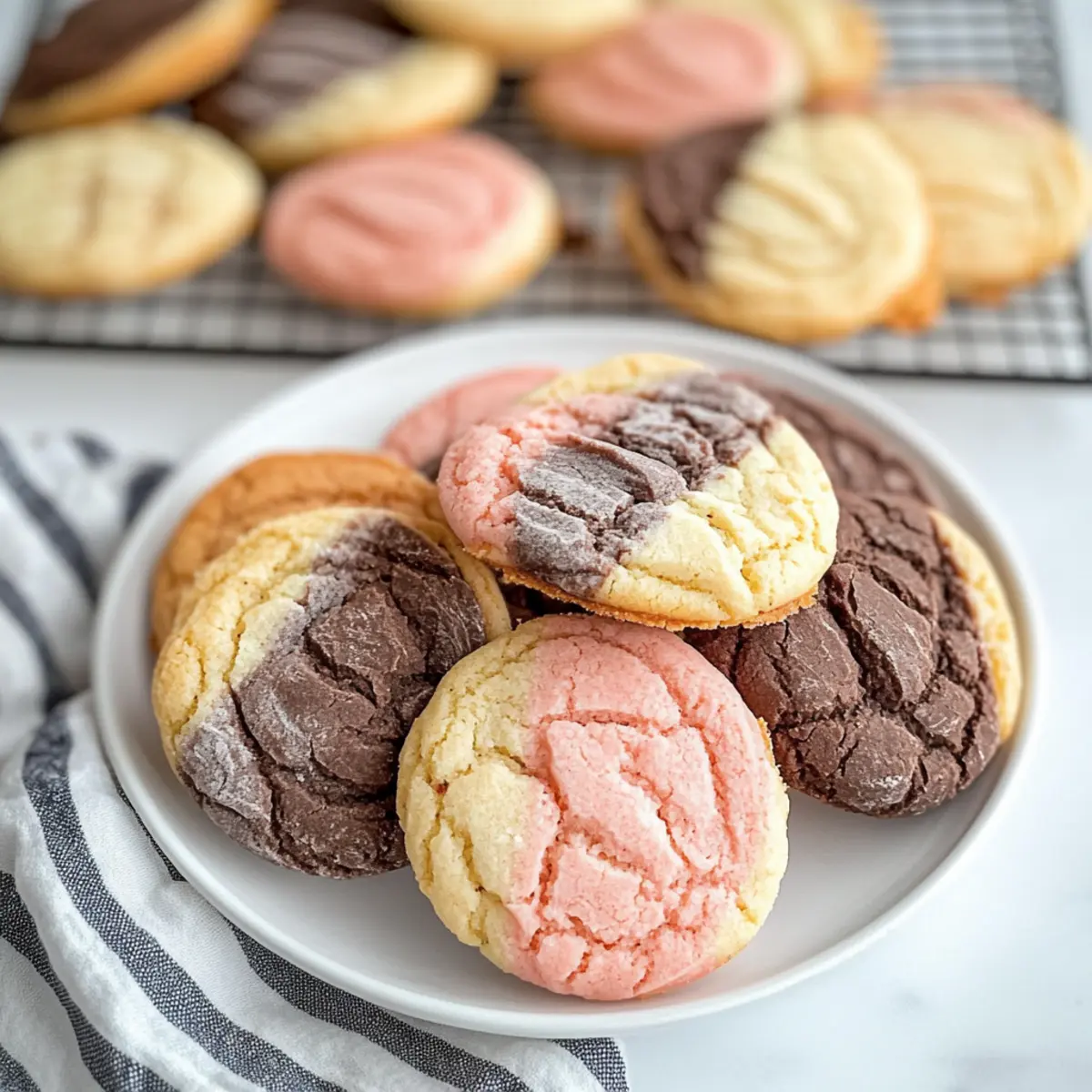 Once baked, let the Neapolitan Cookies cool on the baking sheet for about 5-10 minutes before transferring them to a cooling rack. This cooling period will help them set properly while maintaining that delightful softness. Store any cooled cookies in an airtight container at room temperature to keep them fresh.