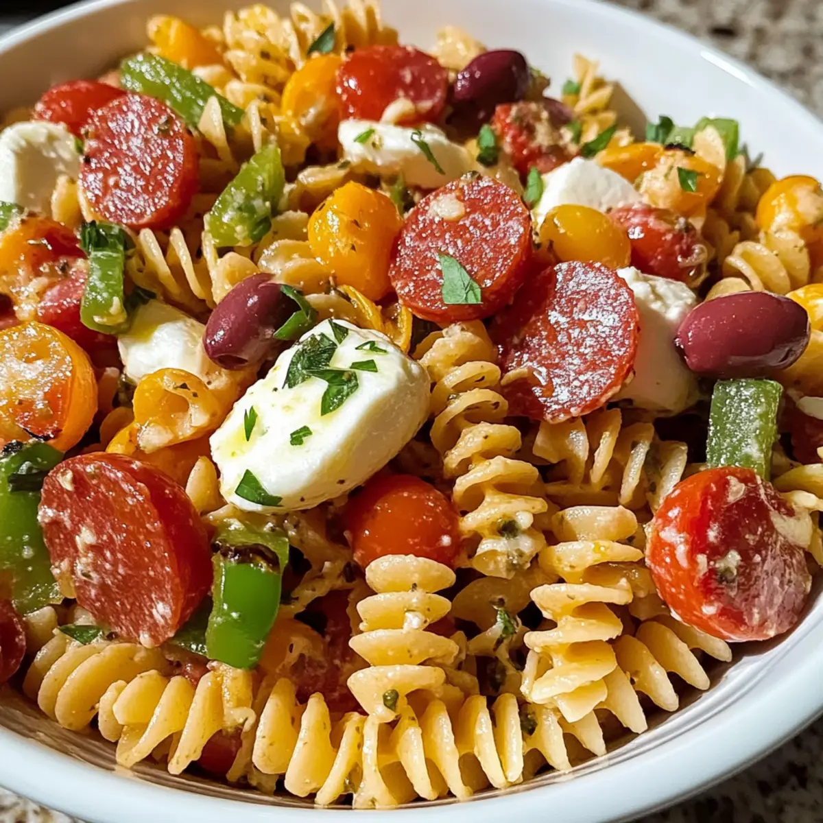 Very! If you accidentally overcook your rotini, it can become mushy in the Pizza Pasta Salad. To prevent this, ensure you follow the package instructions closely, draining and rinsing the pasta under cold water immediately once it reaches an al dente texture. If it does turn too soft, consider adding more crunchy veggies to compensate!