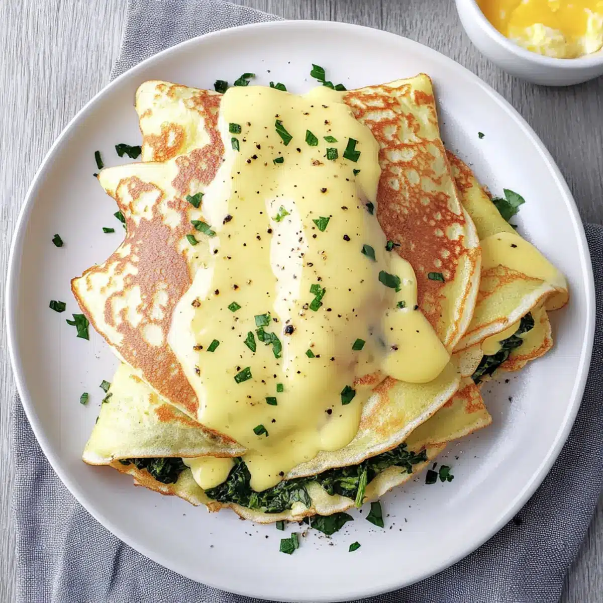 The rich aroma of melting cheese and freshly sautéed spinach fills the kitchen as I whip up a batch of Savory Breakfast Crepes. These delicate, golden creations aren’t just beautiful; they also serve as the perfect canvas for your favorite breakfast fillings. What I love most about these crepes is their versatility: they can easily go from a cozy family weekend brunch to a brunch party centerpiece. Packed with protein from fluffy scrambled eggs and brimming with nutrients, they offer a delicious yet guilt-free start to your day. Plus, they’re quick to prepare, allowing you to indulge in homemade goodness without spending hours in the kitchen. Curious about how to master these airy delights and customize them to your liking? Let’s dive into the recipe!
