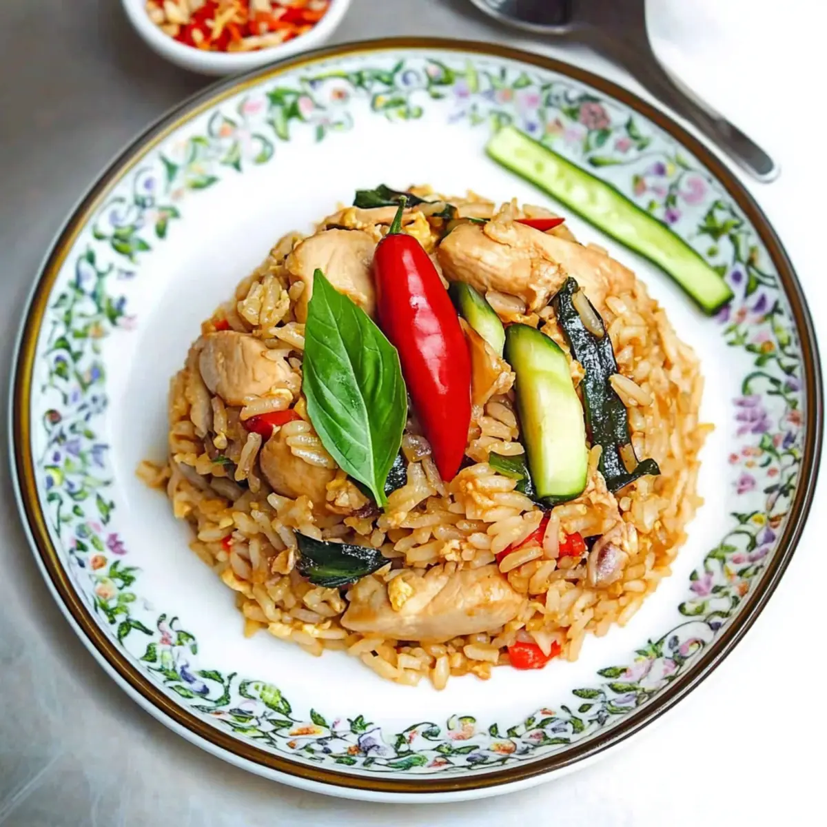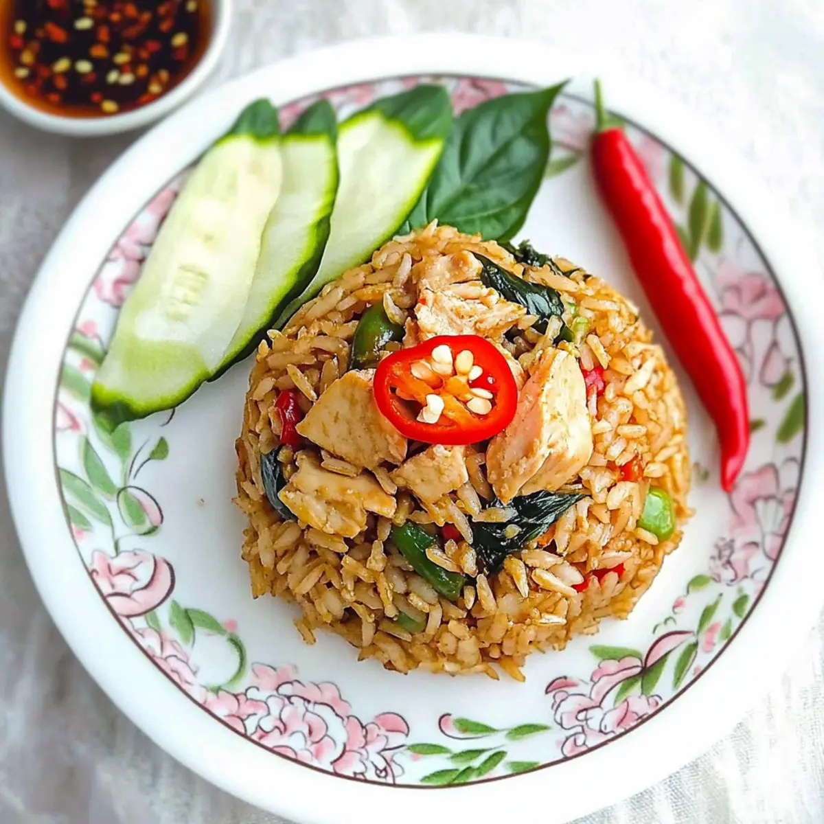 Fresh Cucumber Salad: The cool, crisp cucumbers offer a refreshing contrast to the warm and spicy fried rice, balancing the heat beautifully. Toss in a bit of lime and fish sauce for extra zing!