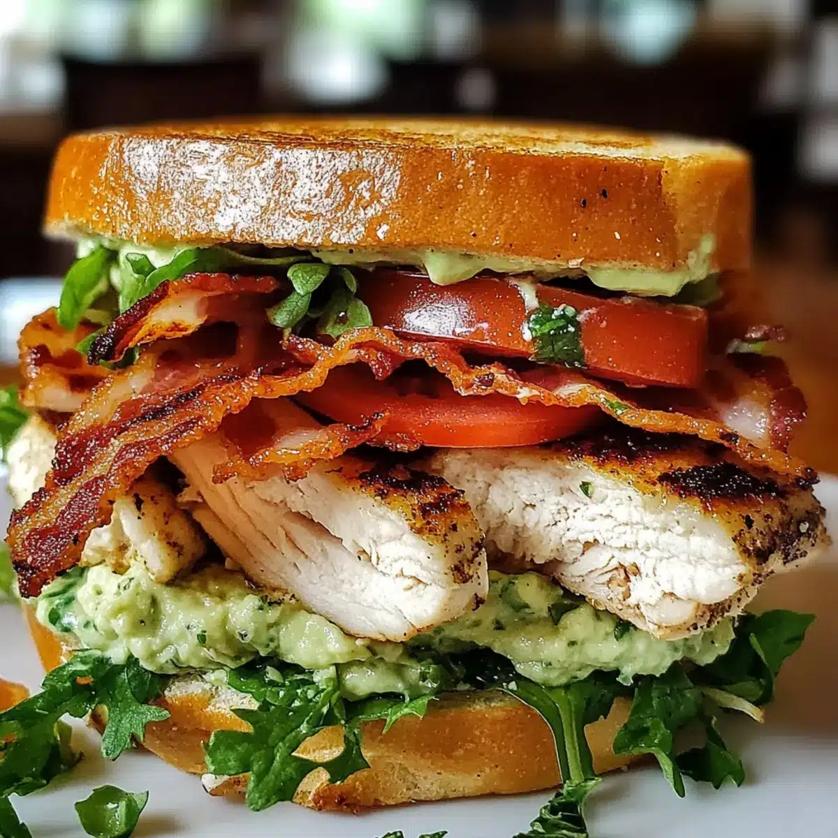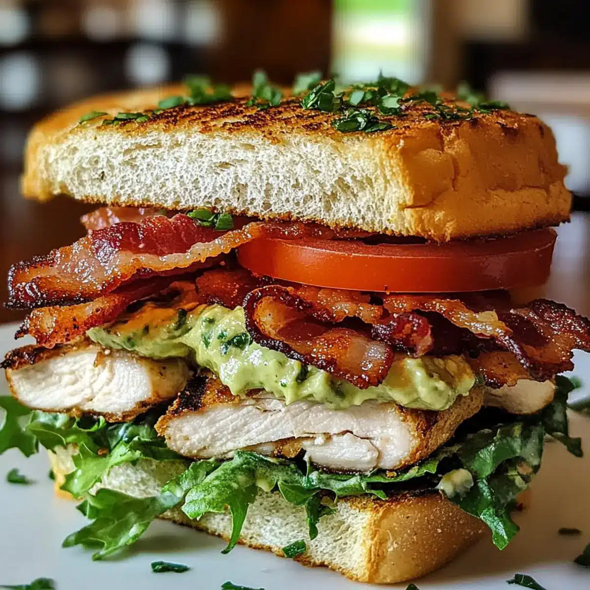 Layers, Layers, Layers: This Ultimate Loaded Chicken Club Sandwich combines juicy grilled chicken, crispy bacon, and creamy avocado for a textural feast.